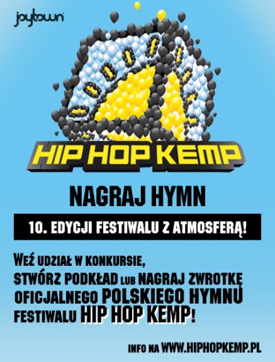 W tym roku hiphopowy świat będzie celebrował jubileusz swojego wielkiego święta. Z okazji 10. edycji czeskiego festiwalu Hip Hop Kemp, Agencja Joytown – polski promotor czeskiej imprezy – zachęca do wzięcia udziału w wyjątkowym konkursie dla młodych producentów i raperów na nagranie festiwalowego hymnu.