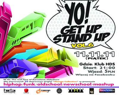 Szósta odsłona Get Up, Stand Up jak zwykle pozwoli klubowiczom na zabawę w rytm hip-hopu, funku, oldschoolu i newschoolu. O dobrą atmosferę i muzyczną oprawę zadba tym razem Pan M. Ta edycja będzie wzbogacona dodatkowo o slideshow prac „The real face of Barcelona” młodego fotografa Pawła Dudziaka. Organizatorzy przygotowali również małą niespodziankę. Pierwsze dwadzieścia dziewcząt/kobiet/pań (zwał, jak zwał), jakie zdecydują się przyjść na imprezę, otrzyma za darmo singiel tarnowskiego zespołu Mango Collective pt. „Nie mam flow”. Początek imprezy o godzinie 21. (MAK)