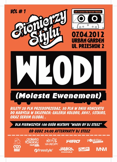 Już 7 kwietnia w warszawskim klubie Urban Garden zainicjowany zostanie nowy cykl imprez Pionierzy stylu. Gwiazdą wieczoru będzie członek formacji Molesta Ewenement i Parias – Włodi.