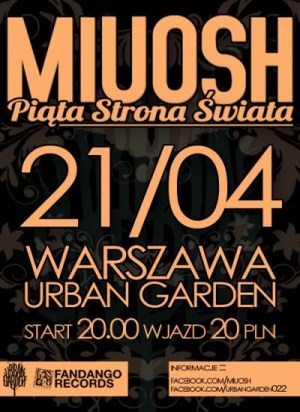 Jako pierwszy na scenie zaprezentuje się śląski raper Miuosh. Koncert promować będzie limitowaną edycję DVD albumu „Piąta strona świata”. Start koncertu o godzinie 21:30.