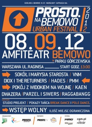 Już za niespełna dwa tygodnie, 8 września 2012 roku, w Amfiteatrze na Bemowie, odbędzie się druga edycja Prosto na Bemowo Urban Festival, na którym zagrają wykonawcy związani z jedną z najpopularniejszych polskich wytwórni hip-hopowych – Prosto Label.