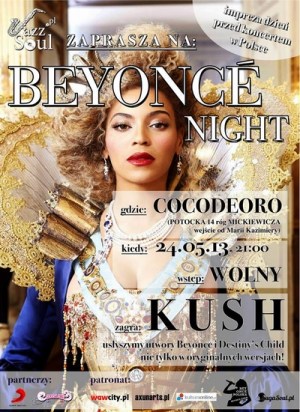 Impreza Beyoncé Night! skierowana jest do wszystkich fanów artystki oraz grupy Destiny’s Child. W jej trackie usłyszymy wszystkie najlepsze kawałki zespołu oraz solowe piosenki wokalistki (nie tylko w oryginalnych wersjach). To wszystko za sprawą Kusha – znakomitego muzyka, na co dzień grającego m.in. w The&, którego jest współzałożycielem.