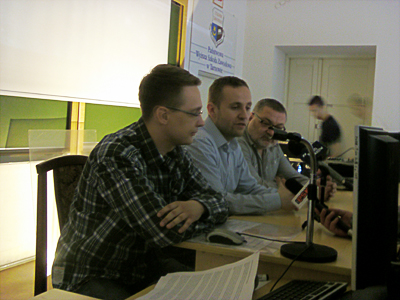 Konferencja prasowa przed Juwenaliami Tarnowskimi 2013 (30 kwietnia 2013 r.). Od lewej: Marcin Nowak (koordynator ds. promocji i kontaktów z mediami), Grzegorz Sokołowski (przewodniczący Rady Uczelnianej Samorządu Studentów PWSZ) oraz Piotr Skupiewski z firmy Biznes i Turystyka