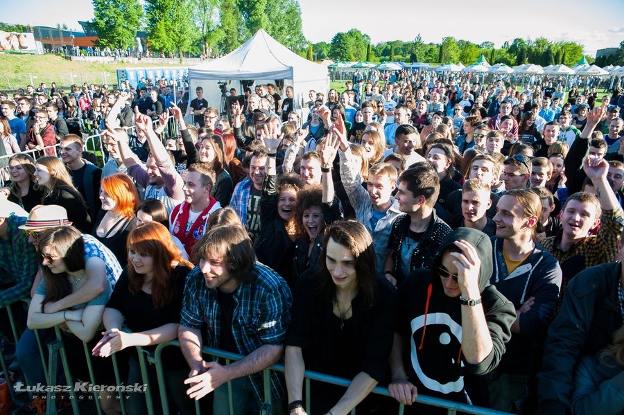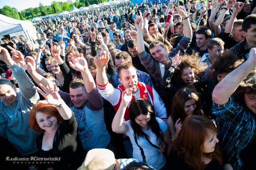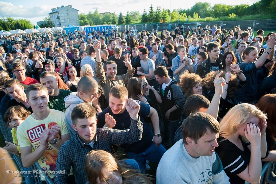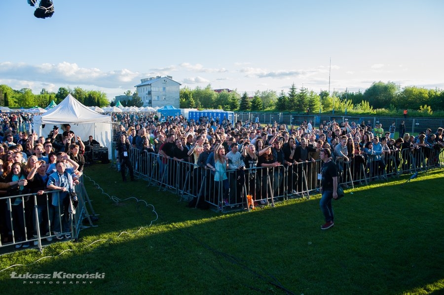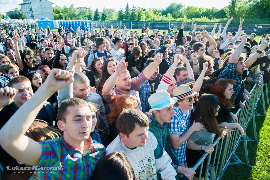 Jak antymagnes na publikę zadziałała formacja Sayes. Wywodząca się z Tarnowa grupa zwyczajnie przejadła się lokalnym słuchaczom. Okres mniej więcej ostatnich dwóch lat, kiedy to zespół zdążył zaprezentować się w programie telewizyjnym „Must Be The Music” oraz zagrać na większości istotnych plenerów w rodzinnym mieście (Zde(a)rzeniach 2012 i Juwenaliach Tarnowskich 2013), nie przyniósł niczego nowego. Grupa przez cały okres prezentuje ten sam repertuar, który grany enty raz przed tymi samymi odbiorcami zwyczajnie nie chwyta. Doskonale było widać to w niedzielne popołudnie, kiedy spora część osób zgromadzonych na stadionie Błękitnych, zamiast zostać pod sceną, skierowała kroki do części gastronomicznej, gdzie raczyła się kiełbaską z grilla i regionalnym piwem serwowanym przez sponsora imprezy. Nie dziwi mnie to wcale. Sam większość występu Sayes przegadałem ze znajomymi na tzw. backstage’u.
