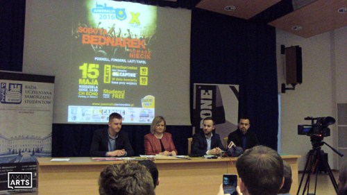 Konferencja prasowa Juwenaliów Tarnowskich 2016. Od lewej: Kamil Spędzia (przewodniczący RUSS PWSZ w Tarnowie), Małgorzata Martowicz (prorektor ds. studenckich i dydaktyki PWSZ w Tarnowie), Grzegorz Sokołowski (sekretarz Stowarzyszenia Projekt Tarnów), Robert Barys (prezes Fundacji Pro Driver)
