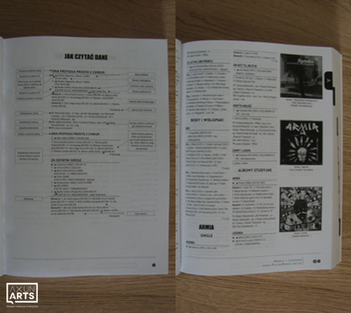 Fragment legendy oraz przykładowa strona z opisami płyt